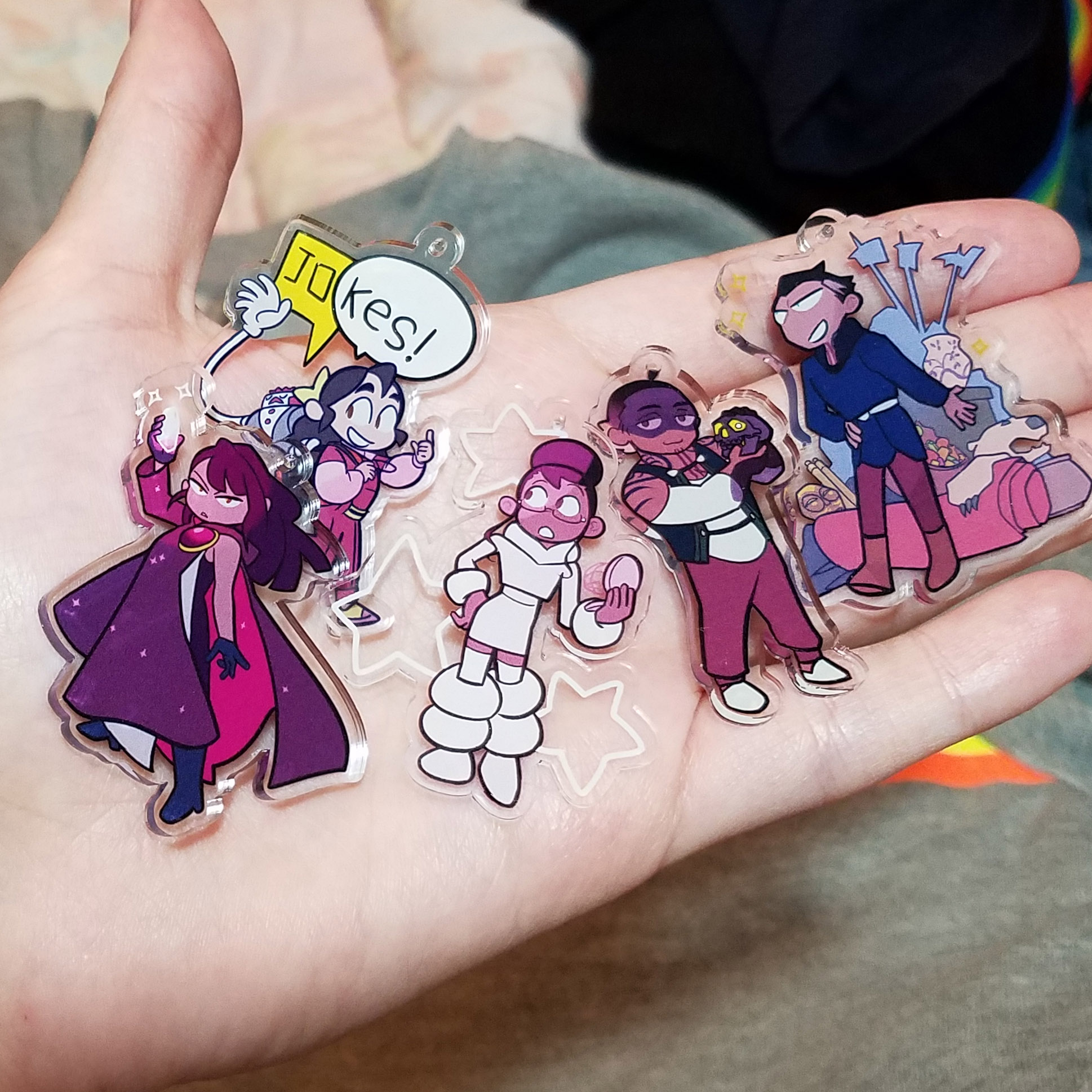 2-inch clear acrylic (double-sided) charms featuring characters from the webcomic The Otherknown! These charms have a small hole in the top so you can thread whatever you want through them. (I'll probably thread them myself at a later point and bump the price a lil bit to reflect it!)
