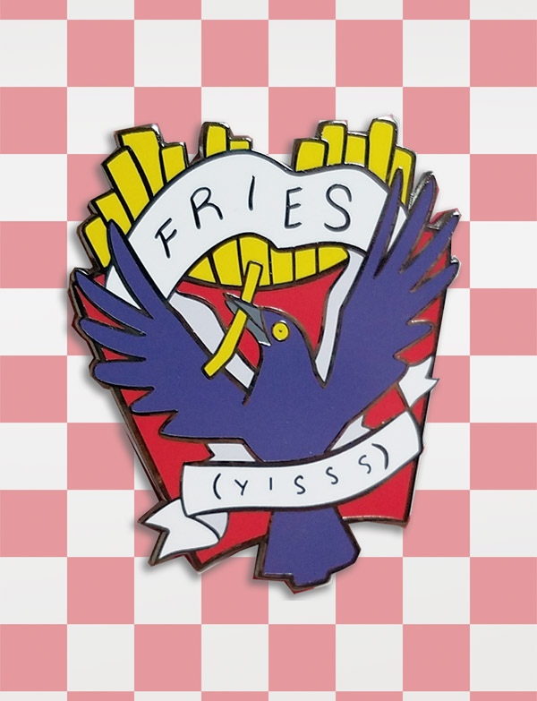It's your new heraldic crest! (If you already had one, throw it away!) Presenting Trash Bird... of my Heart! This 1.75-inch hard enamel pin features a fry-lovin' grackle so you too can show your garbage side. Comes with a custom backing card and two red rubber clutch backs!